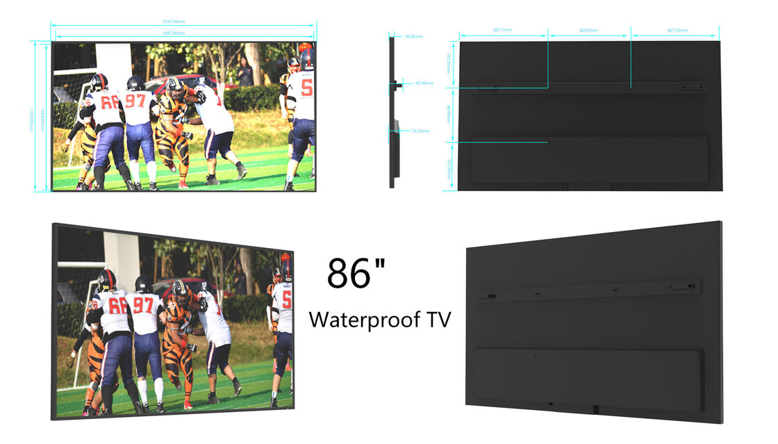 86 इंच 2000nits 4K बड़ा IP55 वाटरप्रूफ आउटडोर टीवी वॉल माउंट